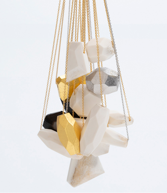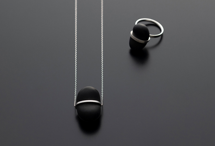 自然の中に秘められた美の法則を、幾何学的形状のデザインの中に落とし込み、凛々しくもおおらかな存在感をたたえながら洗練と艶をまとわせたジュエリー。