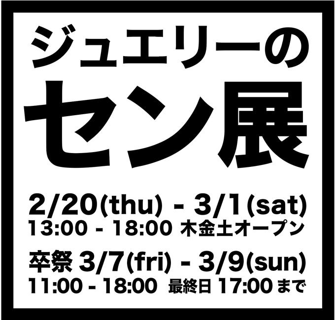 毎年恒例となりました「ジュエリーの◯◯展」今年は「セン展」です!
